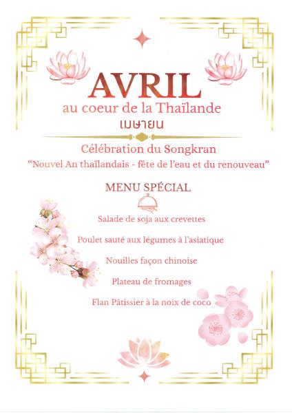 Notre chef de cuisine, Anthony et notre animatrice, Vicky, nous ont concocté un repas spécial pour le Nouvel An Thaïlandais qui fête à sa manière le renouveau du Printemps.