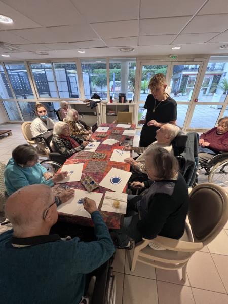 Notre animatrice, Vicky, propose chaque semaine des ateliers à la fois divertissants et permettant à nos résidents de travailler leur préhension fine et leur mémoire.