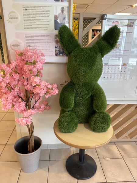 Le lapin de Pâques s'est installé un peu en avance ce matin à l'accueil de la résidence des Epis d'Or...Il attend les décorations préparées avec TOURNIKATY par nos résidents pendant les ateliers POTERIE, deux vendredis par mois.