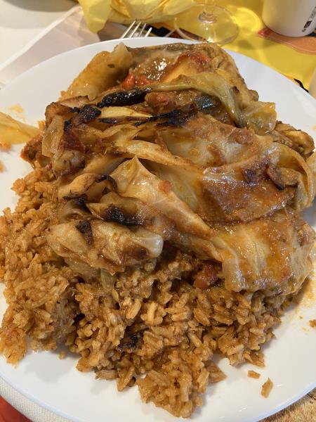 DES PLATS ET BOISSONS COMME DU PUNCH COCO/ JUS DE GINGEMBRE AU RHUM/ BEIGNETS D'HARICOTS/ ROULER AU THON/ RIZ A LA SAUCE TOMATE ET AU POULET ACCOMPAGNE DE LÉGUMES ET UN DESSERT AU COCO. TOUT CELA PRÉPARÉ PAR NOTRE ANIMATRICE SOUTENUE PAR NOTRE CHEF.