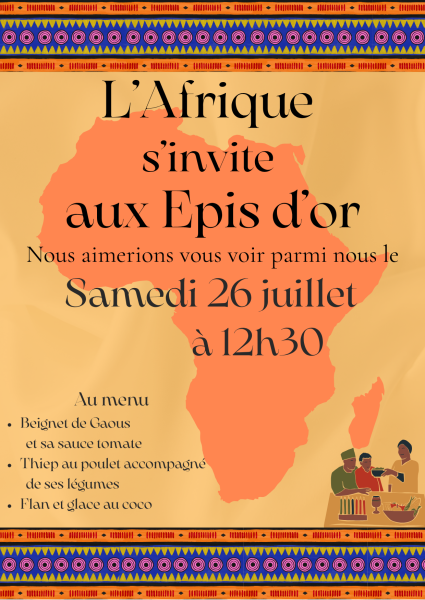 VENDREDI DERNIER, L'AFRIQUE S'EST INVITÉE AUX ÉPIS D'OR. NOS RÉSIDENTS ET LEURS FAMILLES SE SONT RÉGALES DANS UN DÉCOR AUX COULEURS DE L'AFRIQUE.