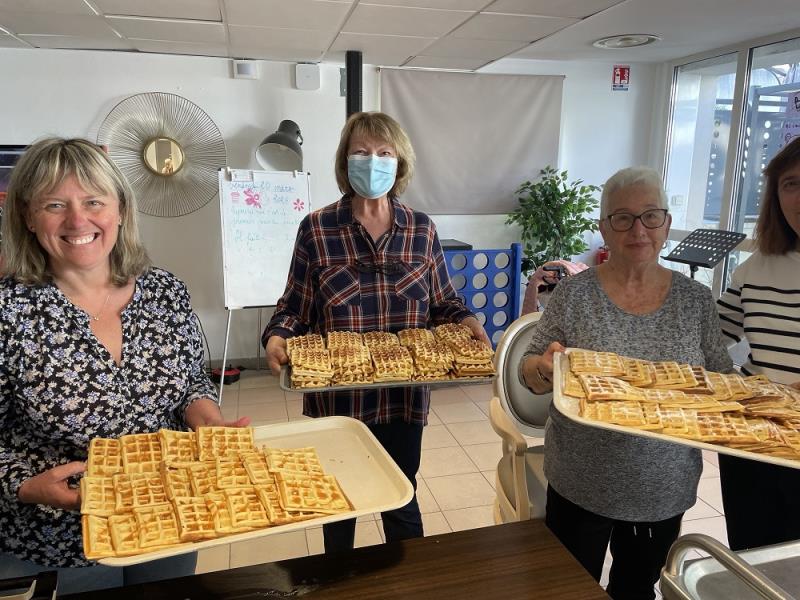 Résidents, familles et professionnels se sont retrouvés autour d’un moment simple et festif, rythmé par les odeurs appétissantes de gaufres tout juste préparées. Pour l’occasion, notre talentueux Chef cuisinier, Anthony, avait confectionné une pâte maison ainsi qu’un délicieux caramel, très appréciés de tous.